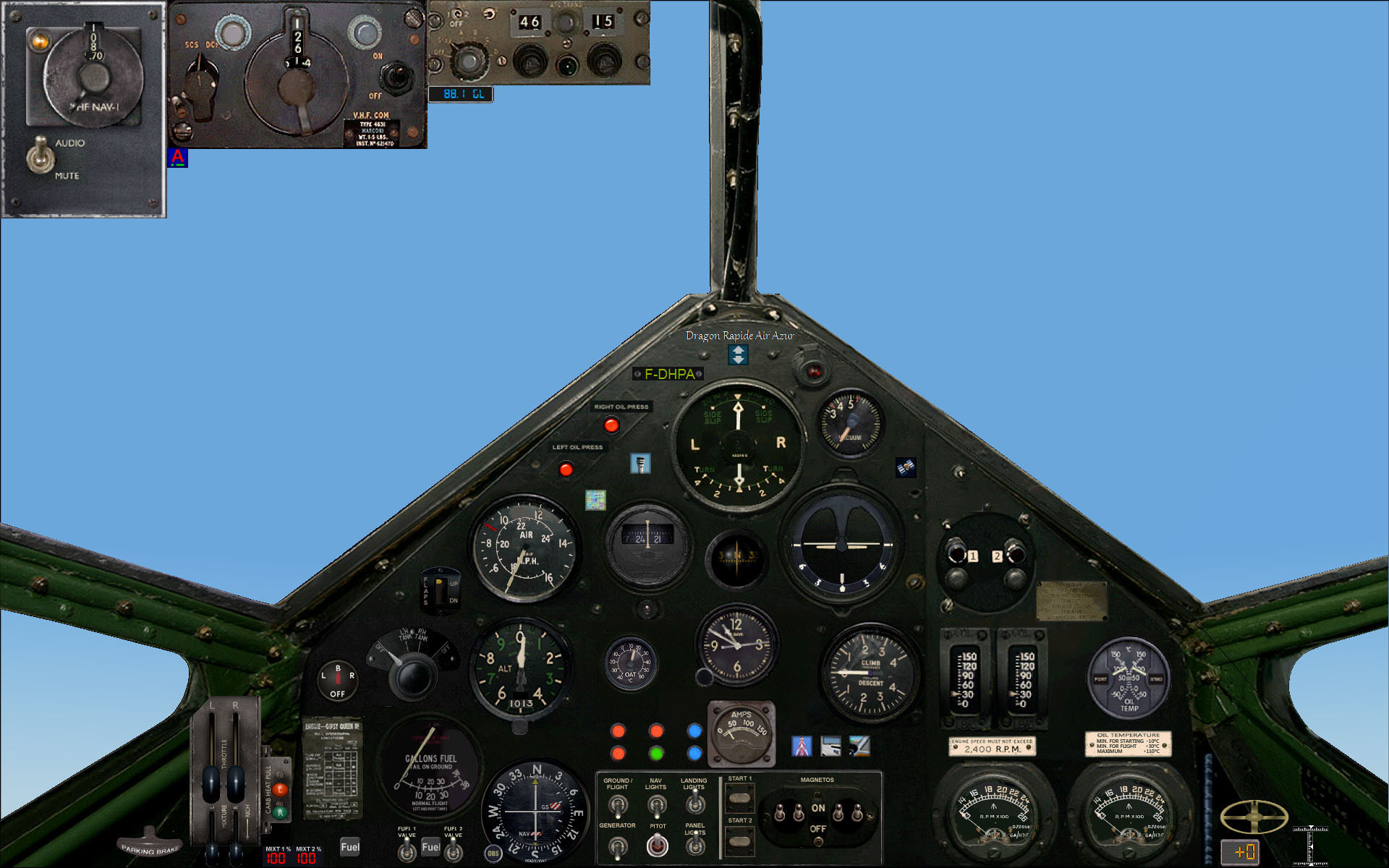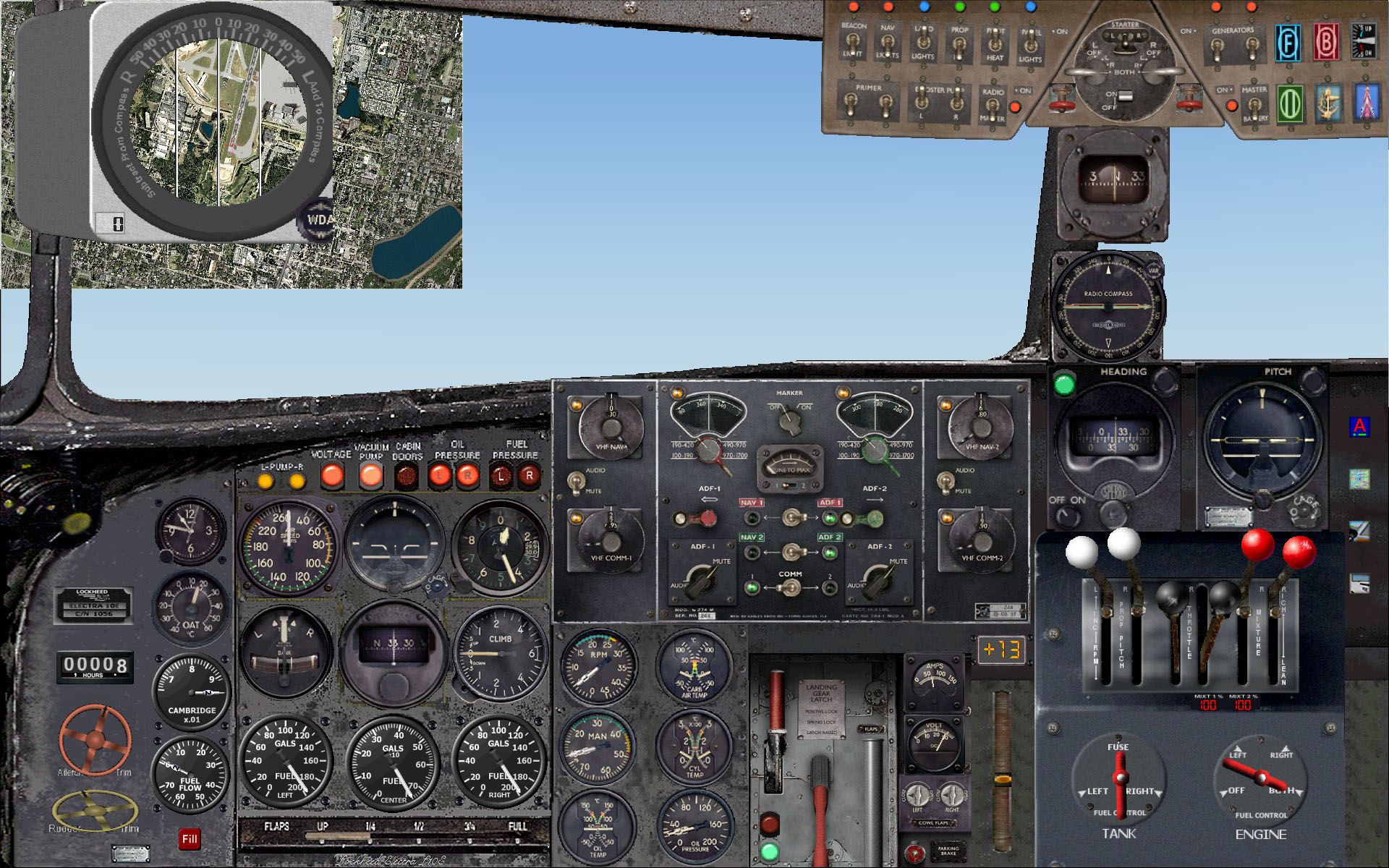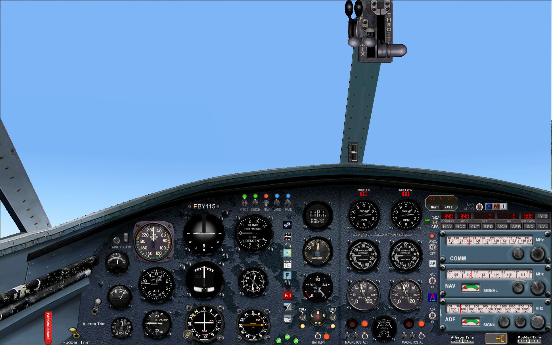 • Gauges are spread over different "windows", forcing you to continuously click icons (or press Shift-2, Shift 3 and so on) just to get throttles, switches and other gauges you frequently need.