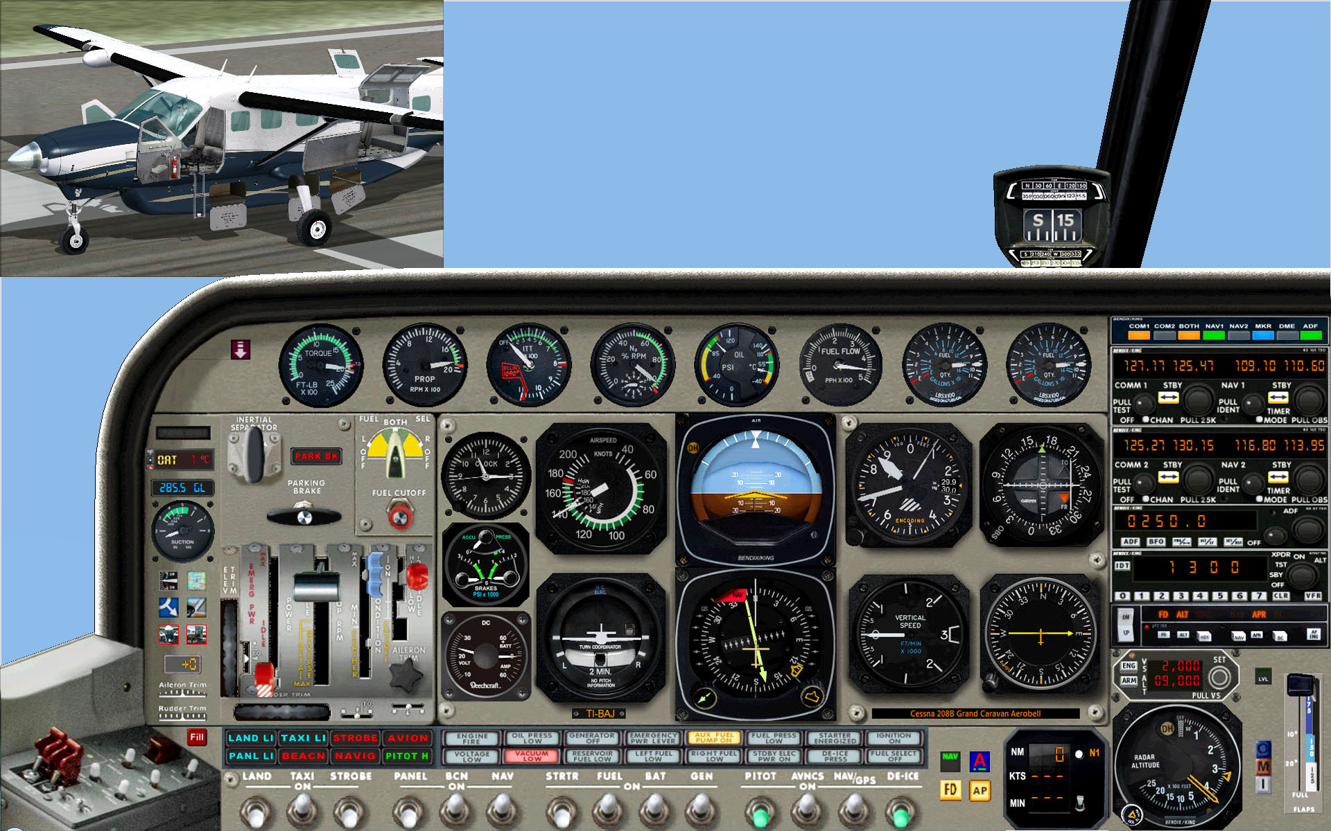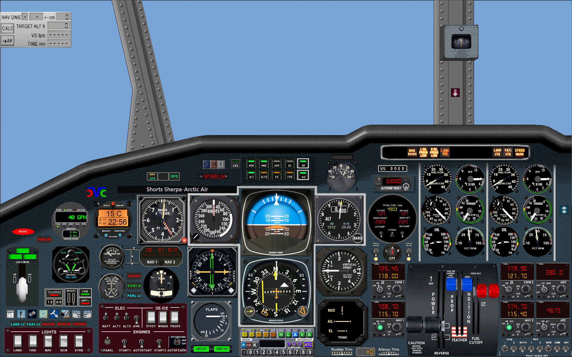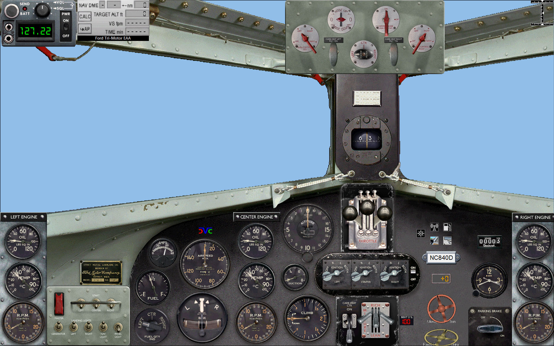 • Gauges are spread over different "windows", forcing you to continuously click icons (or press Shift-2, Shift 3 and so on) just to get throttles, switches and other gauges you frequently need.